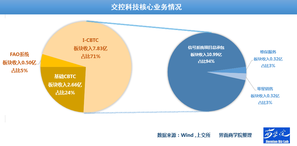 交控科技专业从事城市轨道交通信号系统的研发、关键设备的研制、系统集成以及信号系统总承包。公司核心收入实现便是通过最后一项——信号系统总承包,简单来说就是做地铁调度指挥系统的工程总管。旗下主要为三大类产品,由基础版到升级版分别为:基础 CBTC 系统、CBTC 互联互通列车运行控制系统(I-CBTC 系统)(基于CBTC的进一步升级,可以实现不同厂商在统一标准的设备互联互通)、全自动运行系统(FAO 系统)(第四代产品,高度自动化、高效率)。