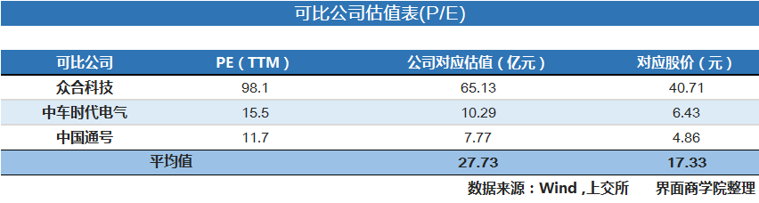 在可比公司选择上,招股说明书给出了几家可比公司,下述公司在三个产品线上与公司均分别有重合:卡斯柯、通号国铁、电气泰雷兹、众合科技、华铁技术、恩瑞特、中车时代电气、和利时、交大微联、富欣智控、信誉庞巴迪。其中卡斯柯与通号国铁均为另一家科创板申报公司中国通号的子公司。