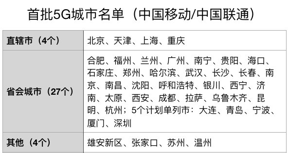 目前,三家都已经将2019年的5G覆盖城市数量扩展至40个。