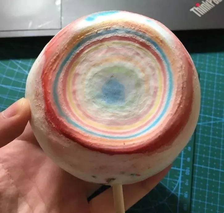 尝试舔一根巨大的棒棒糖,测需要多长时间,最后把舌头添破了也没能舔完,看见红色的那圈没,是他的血。