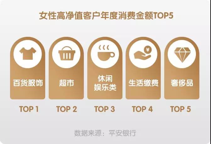 根据平安银行信用卡消费数据显示,女性高净值客户人均年消费额比持有资产200万以下的普通女性客户高出1倍。值得一提的是,女性高净值客户热衷境外消费,其境外人均年消费额是普通女性客户的31倍。