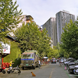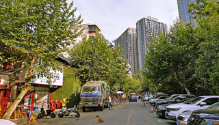 下班的时候路过成都牛市口,这是一段百米左右的盲肠式的小街,路面一半做了停车场,夕阳照着高高的梧桐树,三三两两的路人在树荫下快步走过,另一半临街的餐馆正忙着推出灯箱摆出桌椅准备上客。