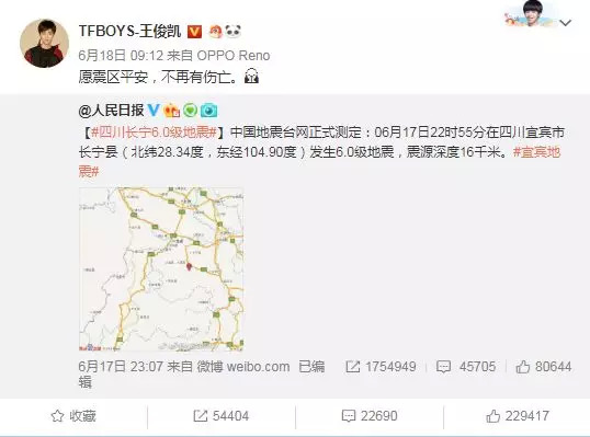 6月12日前,基本上每条微博都能转发100万+,评论25万-70万不等,而在这之后,转发再没破百万,评论掉至15万左右。同样为灾区祈福的微博,转发只有5万多,评论只有2万多。6月19日最新一条微博目前转发69万,似乎在向100万+冲刺。