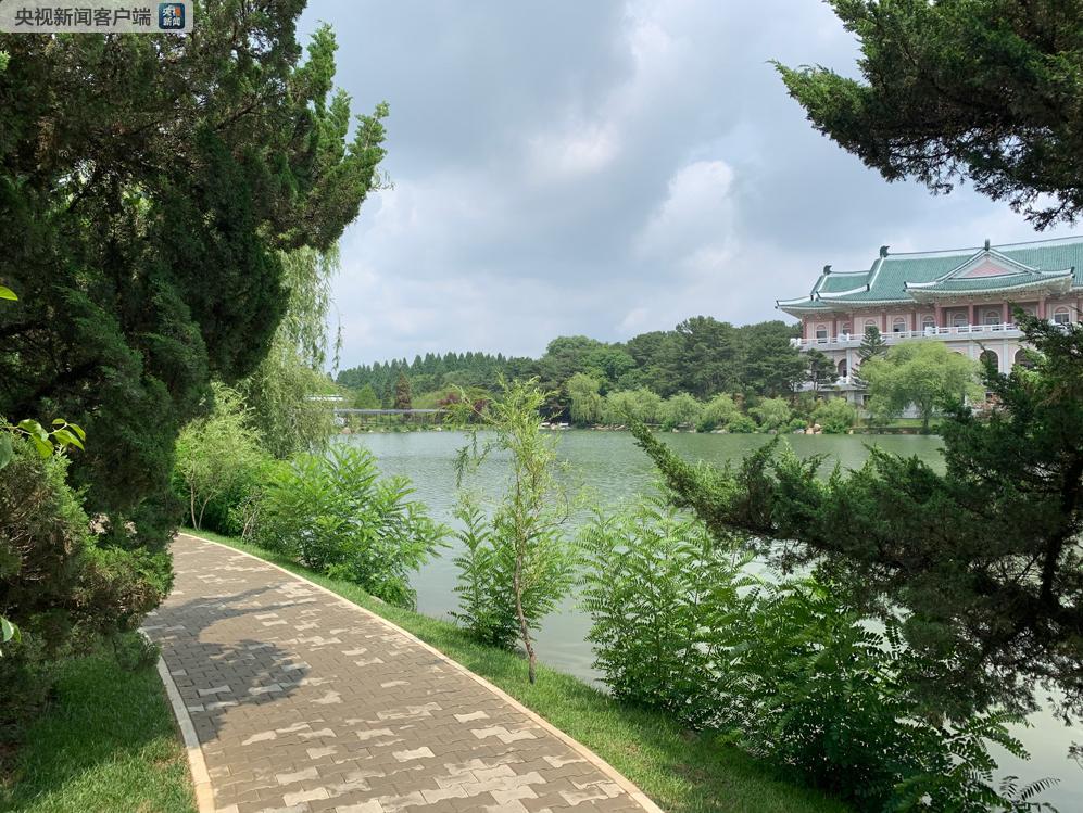 △会见前,习近平和金正恩在锦绣山迎宾馆湖边散步交谈。这是风景秀丽的锦绣山迎宾馆湖边。(央视记者段德文拍摄)