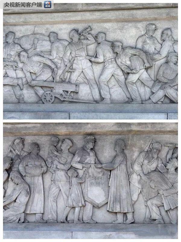 △纪念碑两侧有描绘中朝友谊和中朝两军并肩战斗的浮雕。