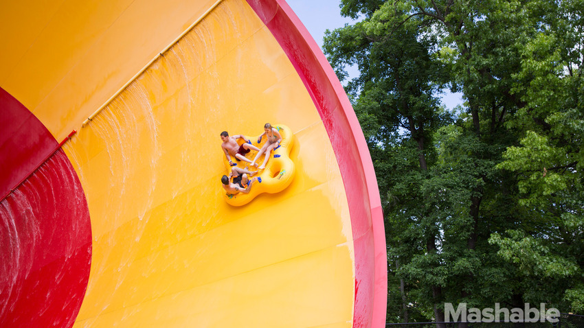 Action Park在公告里说,这条水滑道是在新泽西人Jim Hunt的帮助下建造的,他一直梦想能有一条怪物般巨长无比的充气滑梯。