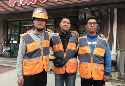 去年10月,付磊和朋友张冲、王德龙一起加入点我达,成为外卖大军的一员。