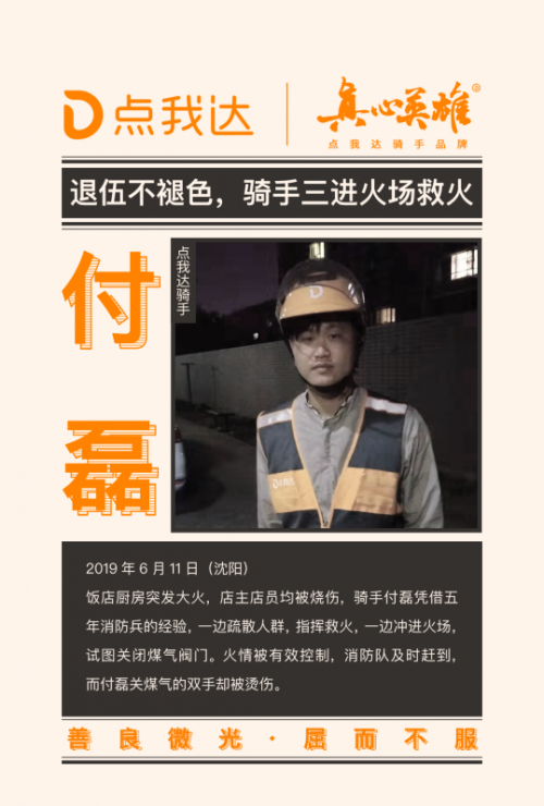 据悉,点我达有骑手300多万,其中涌现了不少见义勇为、好人好事的骑手。他们像隐形人般穿梭于大街小巷,却不时地向城市传递着温暖和善意。正是基于此,点我达于今年3月推出“真心英雄”骑手品牌,以表彰这些为社会创造价值的骑手。