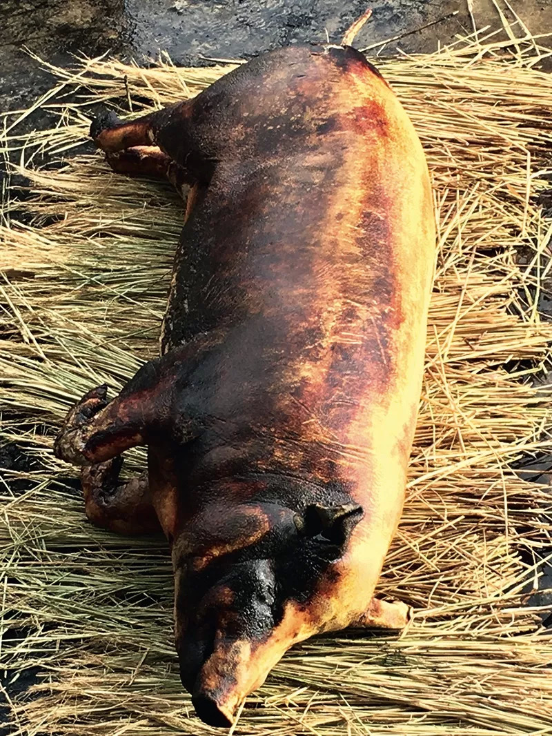 巡游到大理、保山、德宏这一代,你会发现人们都爱吃生皮,又叫 “火烧猪”,之所以不生,是已经用火“低温慢烤” 过的了。由于早年缺乏丰富物资,锅碗瓢盆等炊具,白族人杀猪,先用稻草点火,将其全身的皮子烧透,去毛,刮洗干净。用稻草烤过后,整头猪呈金黄色,皮子及其以下两三寸的部位,实际上已经被烤熟了。