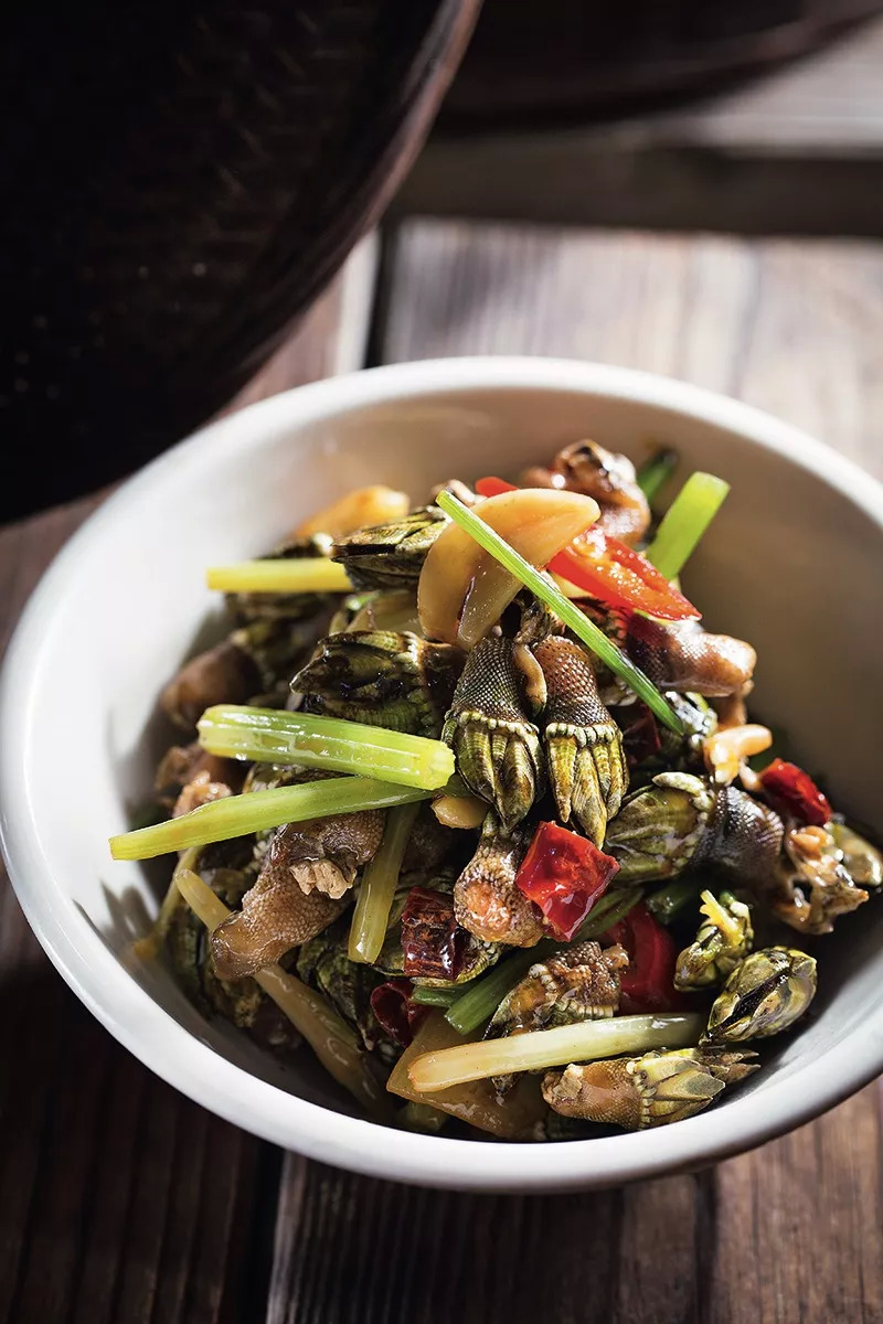 那便是“龟足”,即便在厦门,它也是无比珍贵的稀有食材,价格更是能上二百元左右一斤。龟足,俗名佛手贝、观音掌。或许只有生活在沿海地区的人才曾听闻,人们喜欢吃龟足,倒也不是全吃,吃的是龟足的柄部,一般是白灼或爆炒,当作下酒小菜,把外面的硬皮剥掉,里面是一块白肉。“这块肉口感紧实,有点像蟹肉味,吃时就像嗑瓜子一样。”