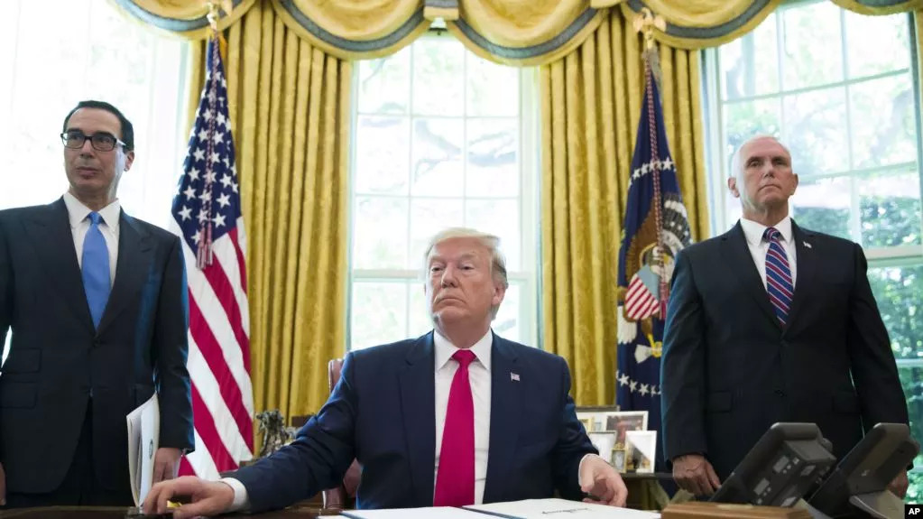 特朗普总统在椭圆形办公室签署制裁伊朗的行政令后听取记者提问。(2019年6月24日)