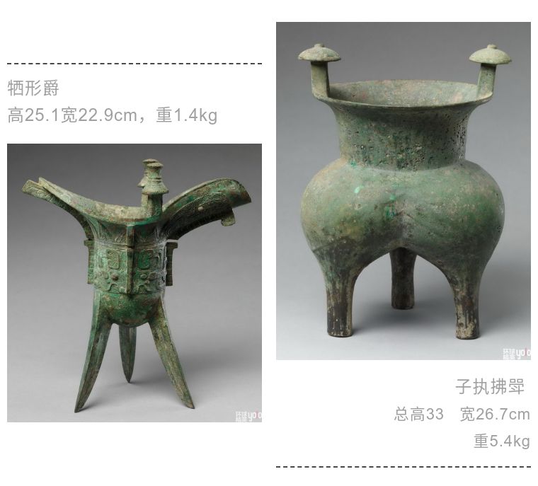 由于缺乏出土时的记录,柉禁整套共有几件也是个聚说纷纭的话题。大都会陈列共14器,13器著录于《陶斋吉金录》(其中父乙觯端方著录为八乙尊)。另外一器应该就是上述后加的觯(妣己觯)。而卖出的总共20件中,有6件是后加的青铜杓,并未被大都会计入整套。