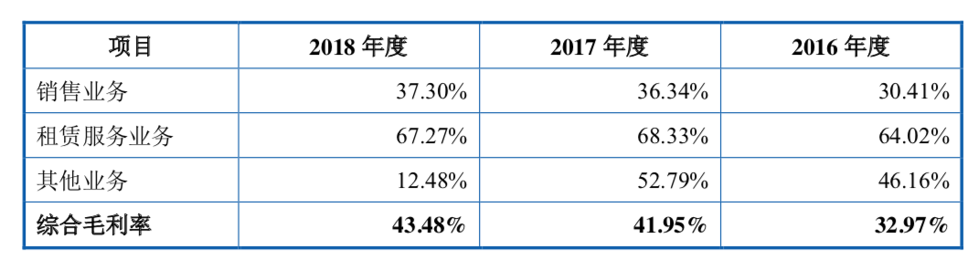 占毛利比重最大的是销售业务。2018年,销售毛利占光峰科技整体毛利的65.55%,其次是租赁服务毛利,占比为33.98%。销售业务以及租赁业务占据了光峰科技利润的主要来源。不过,纵向比较可以发现,光峰科技销售毛利处于逐年下滑态势,租赁服务业务则呈现逐年递增。