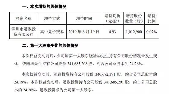 在科陆电子回复深交所问询跨国重婚的前一天,6月19日科陆电子发布了《关于公司第一大股东变更的提示性公告》。从公告中可以看到公司原第一大股东饶陆华与现第一大股东远致投资持股相当接近,均占公司总股本的 24.26%。其中,远致投资仅比饶陆华多了11股。