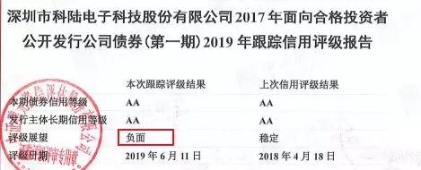 就在近日,科陆电子发布报告称,公司的评级展望被调整为负面,中证鹏元还将公司主体长期信用等级和本期债券信用等级移出信用评级观察名单。