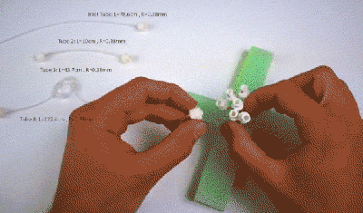 该方法通过使用不同直径的管子来控制空气在软体机器人装置中的移动速度,即一次性通过其中一个管泵输送相同数量的空气,管的大小将决定空气流动的方式和位置。