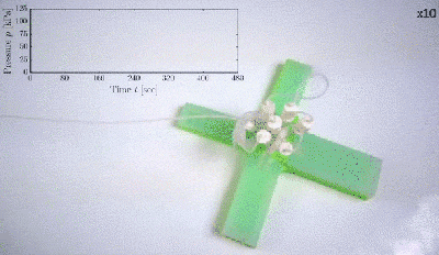 该机器人被设计成十字形,有四条“腿”,每条“腿”都相当于一个执行器,各执行器上含有八个由细小通道连接的气室,顶部则留有七条接口,用于接通输送压缩空气的管道。