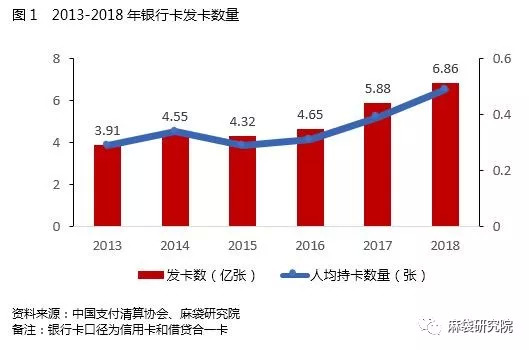 相比于成熟的欧美体系,信用卡业务在我国起步较晚,但发展极为迅速。数据显示,2013年至2018年,我国银行卡发卡数量总体呈上升趋势,尤其在2016-2018年三年期间,年增发卡量高达约1亿张,如图1所示:
