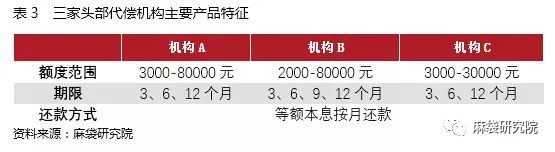 就头部机构而言,其涵盖业务不仅仅包括账单代偿,还包括消费贷款、信用卡管理等。但在三家样本机构中,信用卡代偿产品均占据了支柱地位。