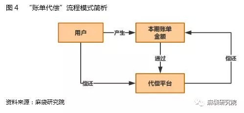 与“套现贷”模式有所区分,“账单代偿”模式的市场竞争中,参与者不乏大型互联网金融公司、消费金融机构等。该类模式并未涉及“下期账单金额”,在本期账单出账后,由用户授权平台获取本期账单相关信息,再由代偿平台据此代偿,如图4所示:
