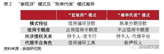 而“账单代偿”模式则是实现了风险转嫁,债权关系从持卡人-发卡行变更为持卡人-代偿平台。因此,对于发卡行而言,“套现贷”模式具有更大风险。