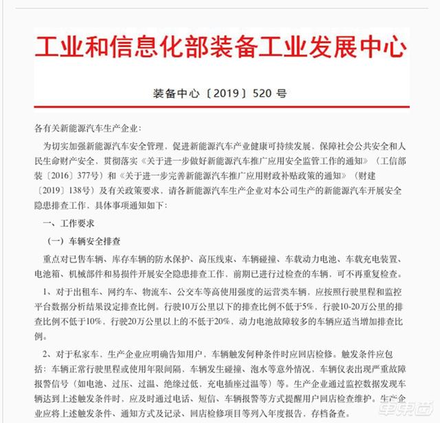 ▲工信部发布《关于开展新能源汽车安全隐患排查工作的通知》