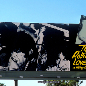 “这就是那种能吸引眼球的图像艺术,人物的头部是伸出来的。大概是1967年,从大门乐队开始,这种风格的广告牌风行一时。埃里克特拉唱片公司的创始人扎克·霍尔兹曼被认为是第一个在日落大道上放置摇滚乐团广告牌的人。这种情形一直持续到了80年代初MTV的问世,以前投到广告牌里的资金现在都被拿去做MV了。这真是70年代独有的艺术形式。”