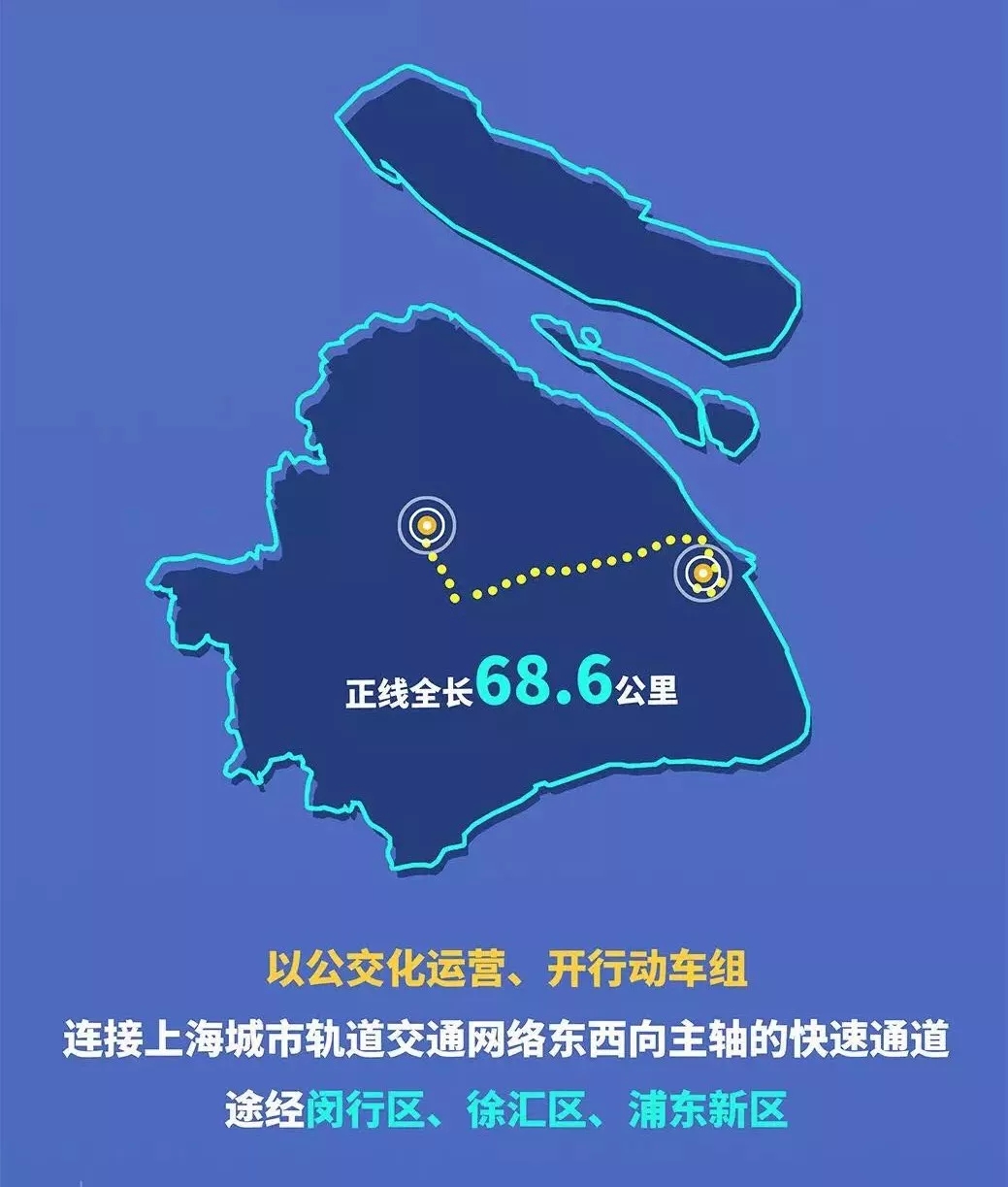 关注机场联络线的小伙伴们看过来!上海市交通委说,轨道交通市域线机场联络线工程起于虹桥枢纽,沿铁路沪杭客专东侧、春申塘通道、外环高速S20南侧及迎宾高速S1南侧走行,经过浦东机场,接入上海东站。线路长度68.6公里,共设虹桥站(既有)、七宝站、华泾站、三林南站、张江站、度假区站、浦东机场站、浦东机场规划航站楼站、上海东站共9个车站。