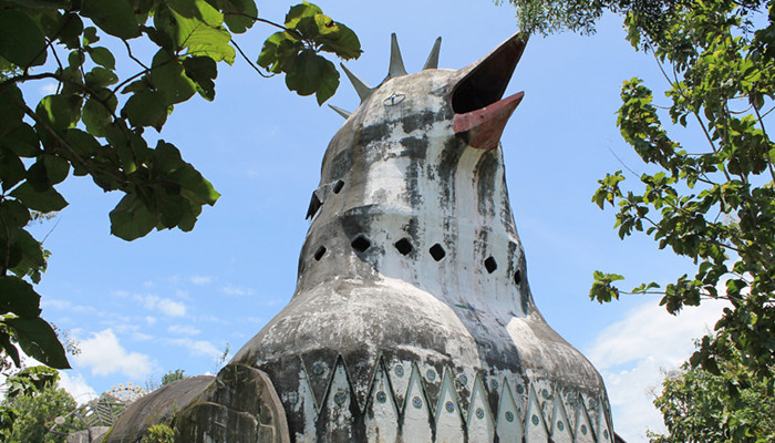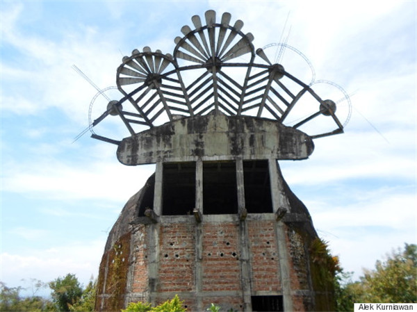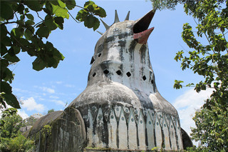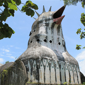 印度尼西亚爪哇岛中部城市Magelang的居民把这个鸡冠炸起来、鸡嘴是红色的建筑叫作gereja ayam,也就是鸡教堂的意思。这个造型奇特的教堂坐落在一个可以俯瞰整个城市的小山顶上。
