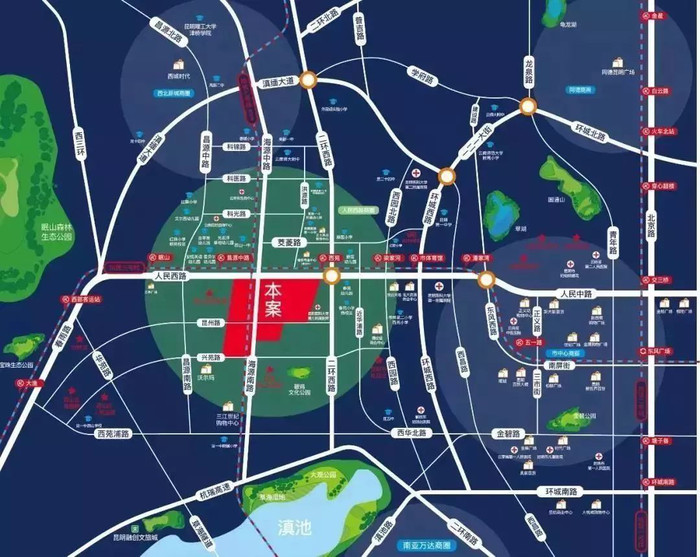 地址:昆明市·西山区·人民西路与海源路交汇处(南侧)