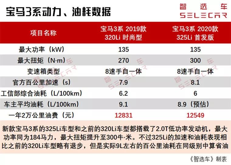 不过在油耗下降的同时,2020款宝马3系的325Li车型相比2019款宝马3系的320Li车型在加速上也有所退步。小智认为对于购买3系长轴的消费者来说,0.2秒的百公里加速差异无伤大雅,换来更大的车身尺寸更有吸引力,追求动力的消费者不妨等一下2020年上市的330车型。