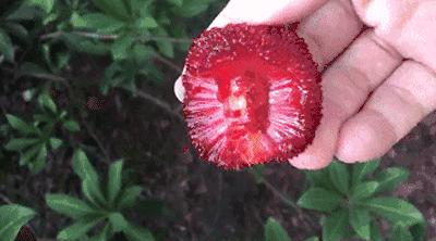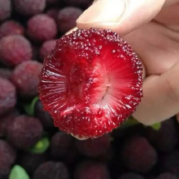 所以相比云贵高原出产的杨梅,湘西地区的杨梅开始出现融合的变化——相比贵州杨梅,湘西杨梅的肉质明显变硬,肉柱粗而圆,汁水变多,甜度下降,酸甜达到更佳的比例。