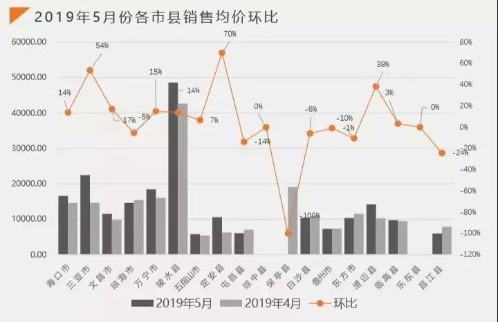 之前看到组数据,海南5月份9市县销售均价环比成正增长,海口、三亚、文昌、万宁、陵水、屯昌、五指山、定安、澄迈等,最高为定安环比增长70%。