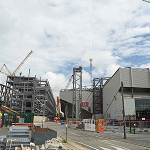 六月份,利物浦在官方网站Liverpool.com上放出一段球场正在重建中的短片。视频显示,一部巨无霸的起重机正在升起一块大金属片,而这块大金属片主要是用来固定和支撑球场顶部。