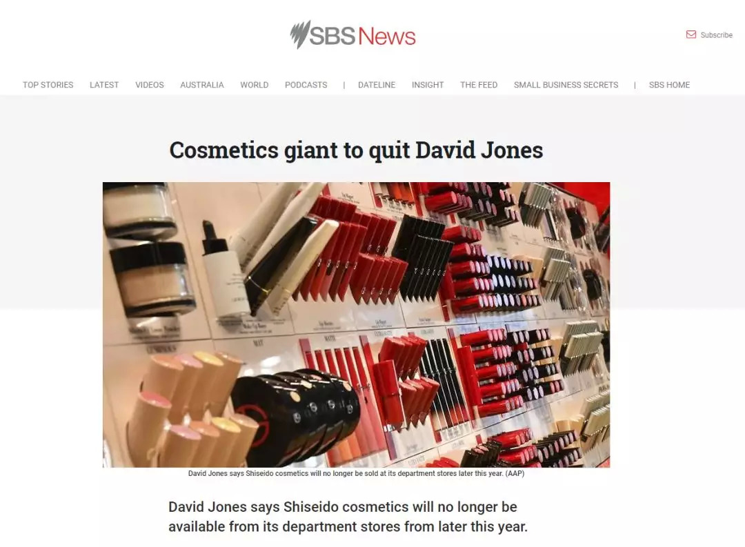 据澳大利亚SBS新闻报道,资生堂集团已终止与当地百货David Jones的合作,计划于今年晚些时候撤柜。资生堂在一份声明中强调,他们不会退出澳洲市场,从David Jones撤柜是由于集团运营计划的变更。