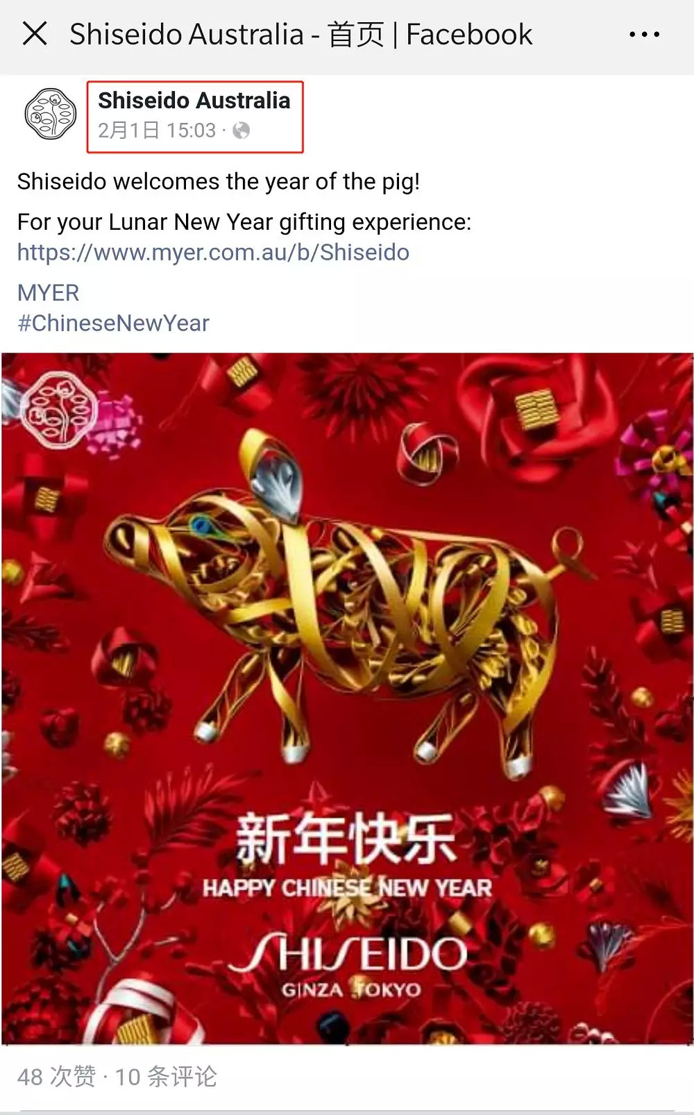 ▍资生堂澳大利亚Facebook截图