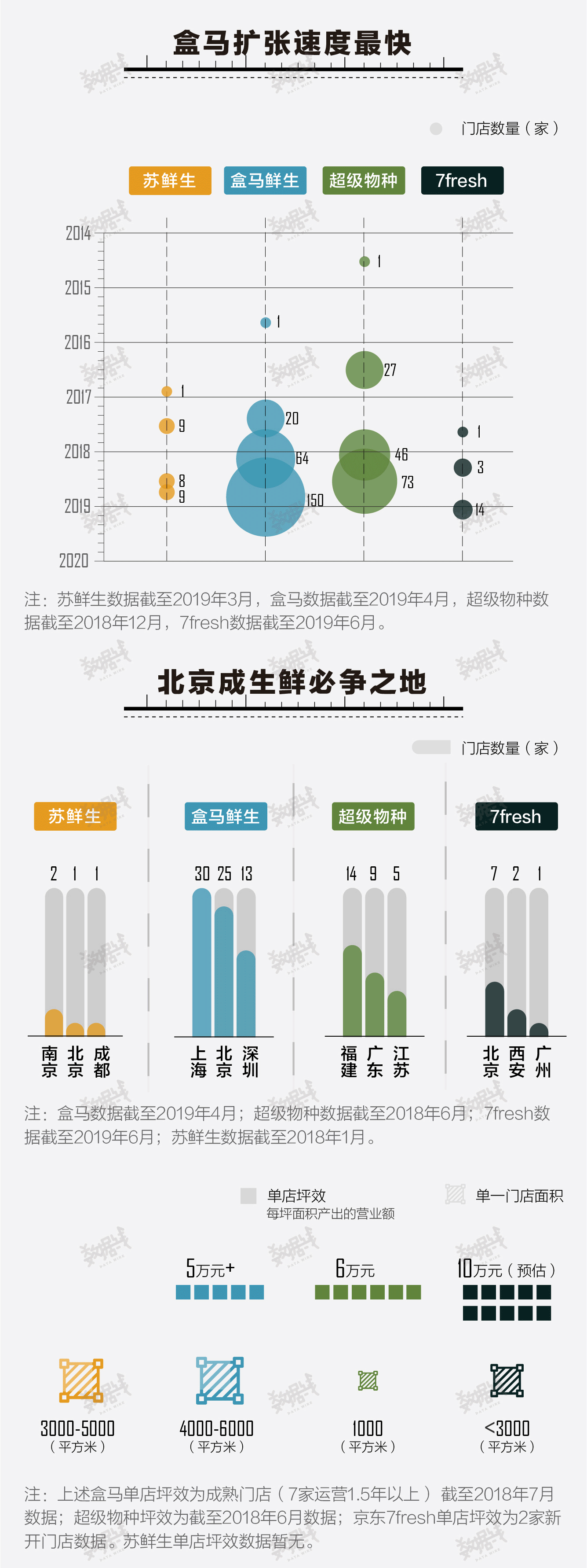 阿里系盒马鲜生,阿里和苏宁系苏鲜生,腾讯和永辉系超级物种,京东系7fresh......互联网资本的涌入,吹皱生鲜市场“一池春水”。据界面数据(公众号ID:shujuxian_kuaikan)公开资料统计,一线城市是上述四家超市竞争的主战场。作为消费者的你,最爱逛哪家?