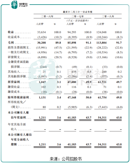 财务方面,2016财年-2018财年,中至科技实现收益分别为3363.4万元(人民币,下同)、9429.3万元及1.24亿元;净利润由2016年的121.1万元猛增至2018年的5431.1万元,复合年增长率高达550.92%。