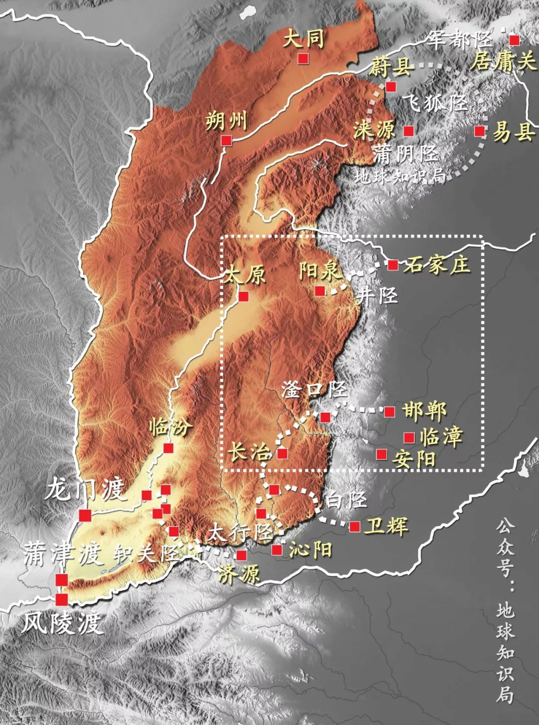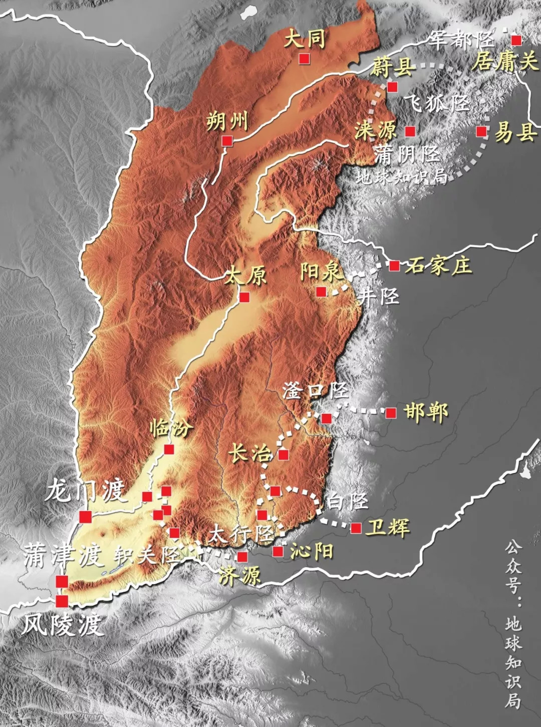 通向华北平原的太行八陉,以及山西西入关中的多个渡口