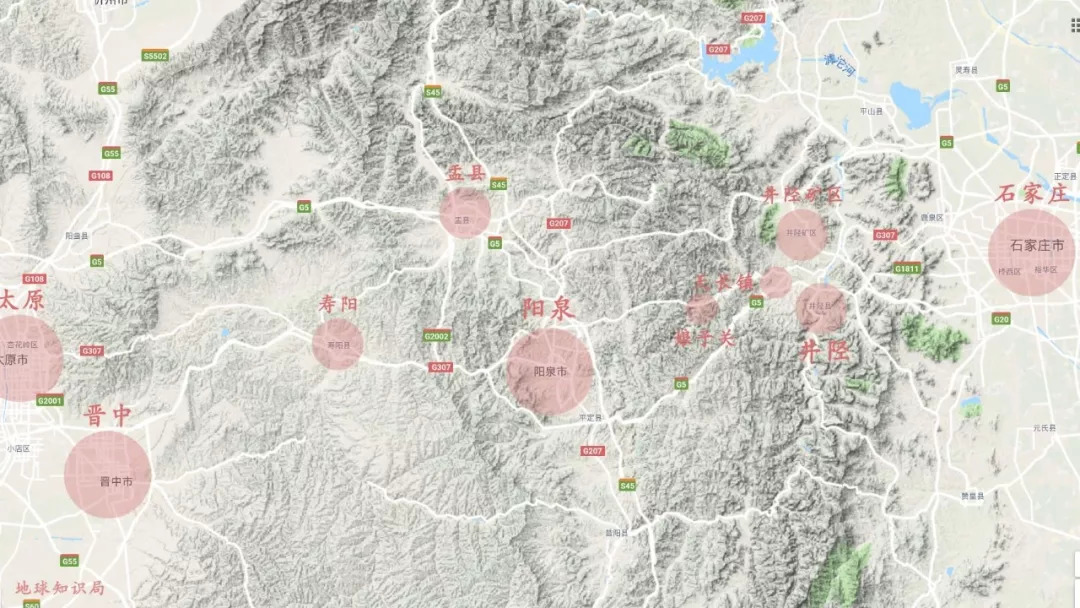 晋冀之间极为重要的通道,则是石家庄地区至山西境内的路网,毕竟这是连通太原与石家庄两省省会之间的要道,繁忙程度也较其他晋冀通道要高很多。今天的井陉一般而言是指石家庄下辖的县以及矿区,而在古代则是指一条重要的通途,是太行第五陉。