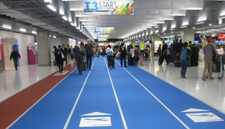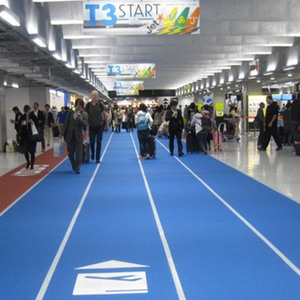 日本东京成田机场面向廉价航空开设的第三航站楼内,特别铺设了一条1650米的田径跑道。