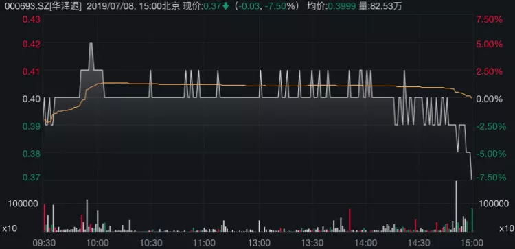 华泽方面,股价在14:00至14:05走出“M型”走势。随后的12分钟内,其股价停滞在0.4元水平。一波低位横盘的行情无缝连接,密集的波动维持了30分钟。14:48分后,华泽一路走低。截至收盘,华泽收0.37元,跌7.50%,总市值仅剩2.01亿元。