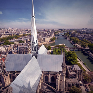 首先,新的尖顶是一面聚光镜,屋顶也将由镜子制成。通过光线的反射与变化,每一刻的建筑都会“焕然一新”。在Cai与Li眼中,这一设计将圣母院与巴黎城市、时光变幻联结在了一起。