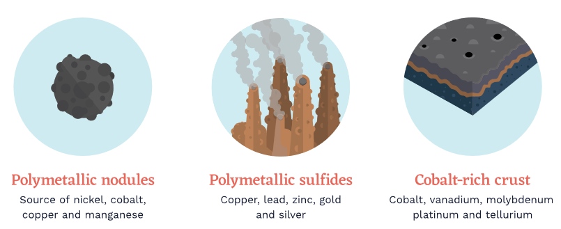 这些矿物之中,多金属结核、富钴铁锰结壳以及多金属硫化物(又称海底块状硫化物)三种矿产资源最具有开采价值。