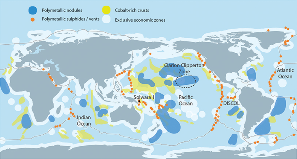 尽管目前各国的深海开采仍处于探索阶段,但是在面积达3.6亿平方公里的广阔深海区域(水深超过200米)中,人们已经发现了包括铜、锌、锰、钴甚至是稀土在内的众多高价值金属矿物。这些资源对于智能手机、笔记本电脑、太阳能电池板、风力涡轮机和电动车至关重要。