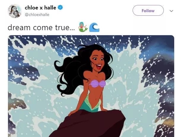 7月4日,在迪士尼官方宣布将由哈雷·贝利出演《小美人鱼》女主爱丽儿的这天,这位美国歌坛的新星激动地在社交媒体上发出了这样一句话,并配上了一张肤色全黑的动画版小美人鱼——这是迪士尼开启动画IP真人版业务布局以来,首次在主角肤色上进行“转化”。