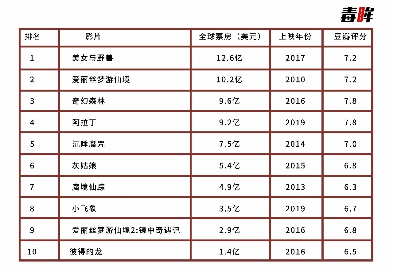 不过虽然这几年迪士尼在翻拍上一直不走寻常路,但票房成绩的出色却支持其如此“肆意妄为”。
