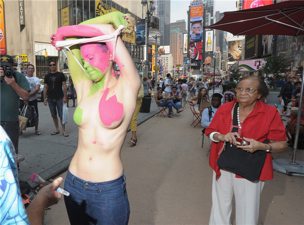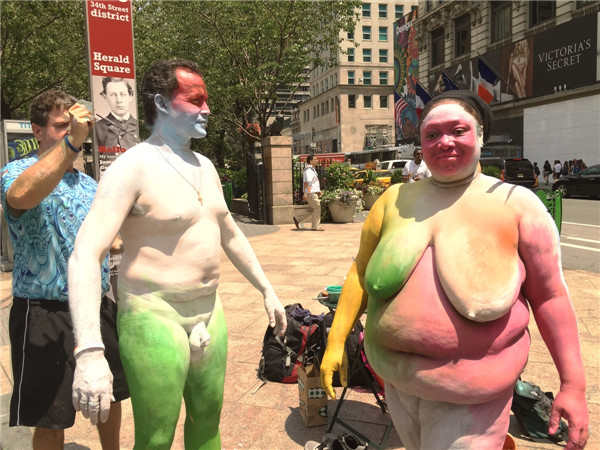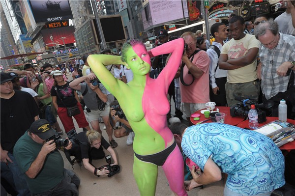纽约作为全美唯一一个可以举办裸模人体彩绘活动的城市,于当地时间7月18日迎来了一年一度的人体彩绘日。这是艺术家Andy Golub发起的,由来自世界各国的艺术家在志愿者身上作画的一个街头活动。