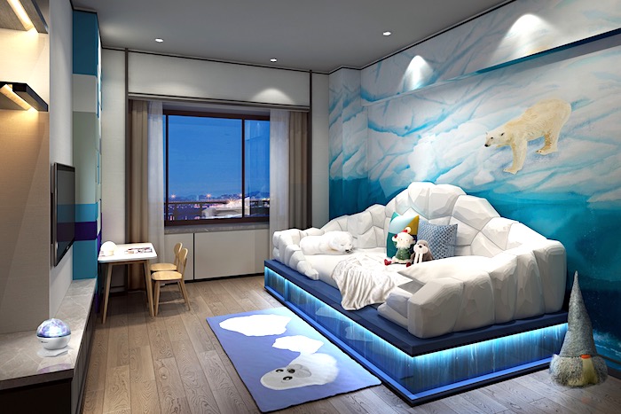 如秦皇岛香格里拉推出了6大主题亲子套房(以沙滩、美人鱼、树屋、城堡、海洋和太空为概念),哈尔滨香格里拉大酒店也推出了6大主题亲子套房,不过主题有所筛选,加入了哈尔滨特色的冰雪与冬日主题。