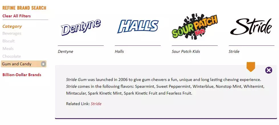 很显然,为了让来自美国的炫迈更本土化,亿滋在产品口味上也努力迎合着中国消费者的偏好。相比美国市场主打“清新口气”,炫迈在中国市场则更像“水果糖+口香糖”两个不同零食品类的结合体。小食代在查看亿滋美国官网时发现,其售卖的炫迈口香糖多与“薄荷(Mint)”口味相关,例如留兰香( Spearmint)、甜薄荷( Sweet Peppermint)、持久薄荷( Nonstop Mint)等,而带有“果味(Fruit)”标识的产品仅有两款。
